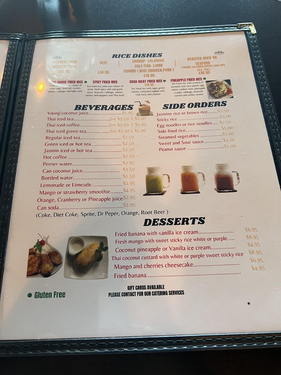 Food & service were great! We’re vegetarian & they had many options to choose from! We ordered Pad Thai & Thai Fried Rice. Pad Thai had more flavor than the fried rice but both were good. They have spice levels from 1-5 & we ordered #3. It was too spicy for both of us so just be careful !